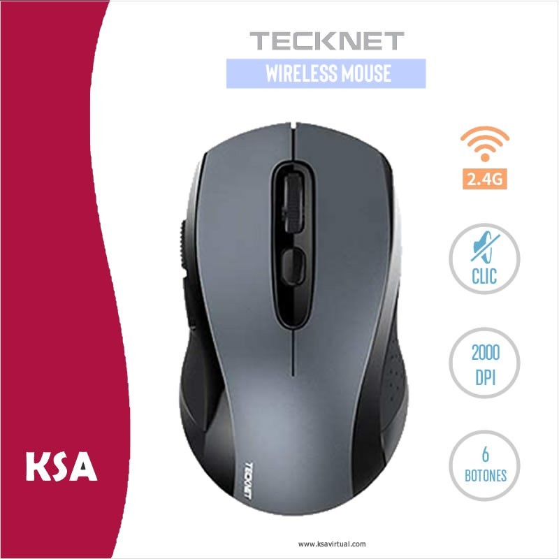 TeckNet Mouse Inalambrico / Wireless Mouse 2000DPI Ergonómico - 6 Botónes  - Silencioso